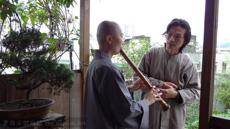 慧空師開始學習唐口簫的吹法,已經對鬆口風,輕鬆出聲體驗到,繼續熟悉穩定度,