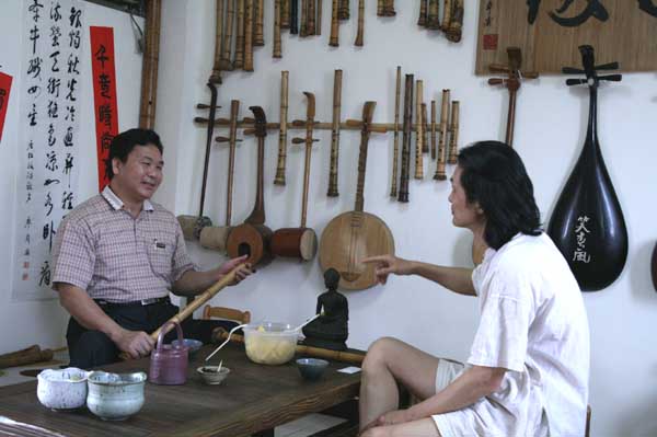 昨天下午新加坡黃德成先生成再訪,剛好中部簫友葛俊良兄也在場,黃老師與一位台藝大畢業的胡琴專修同學一起到達。一年一度來台的他已經走遍北中南了。同是樂器製作人,在樂器製作的音色問題與原理,我與黃老師有一場熱烈的討論,觀念上有不少雷同與差距之處,認知的差距也會造成作品性能方向上的差異,樂器製作上的原理是理性追求的真理,有規律規則的定數與條件差異下的變數,不是感性感覺,是錙銖必較的。真理在充分佐證下就會越辯越明,這是一次有趣的對話!黃老師也在胡琴改良上下了功夫,對傳統樂器的發展用心,值得讚揚!