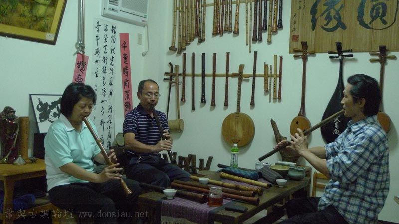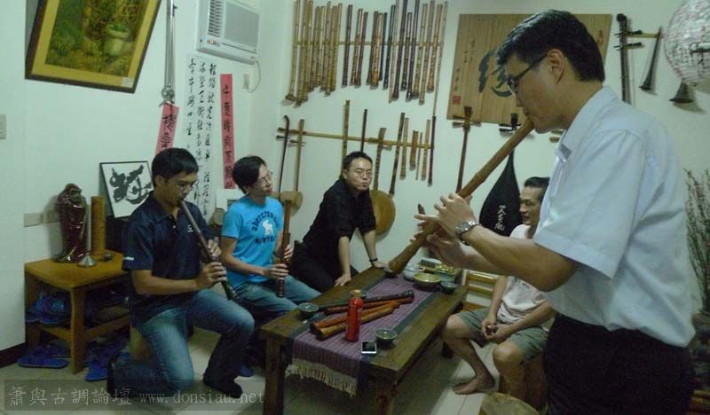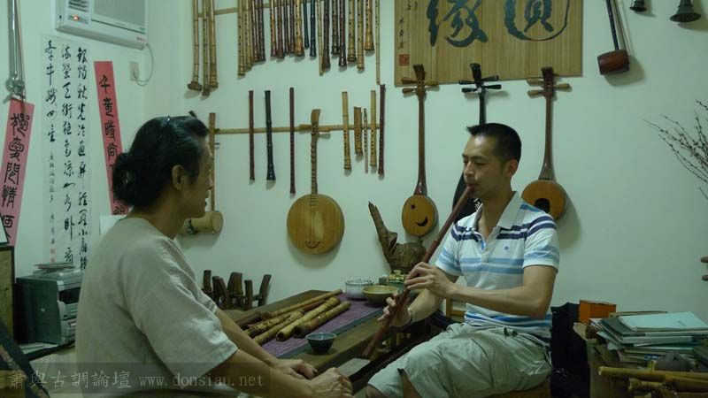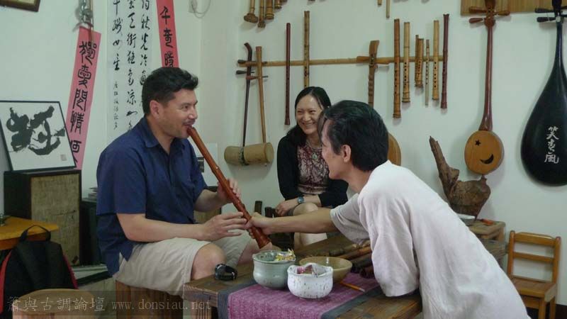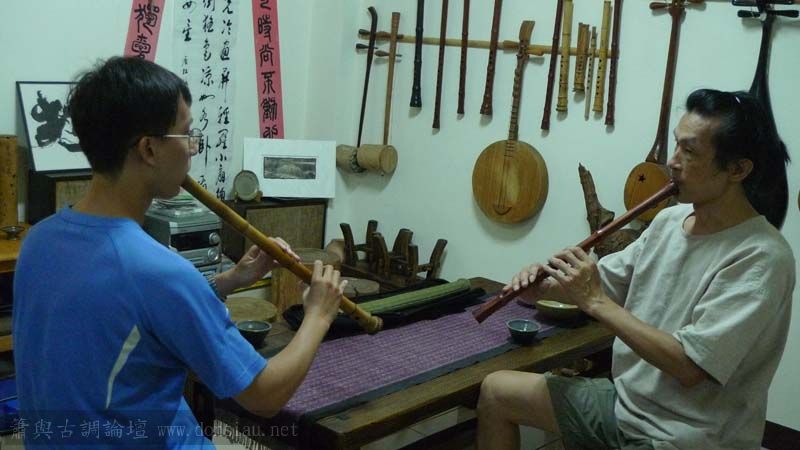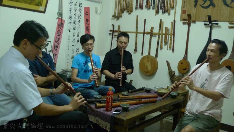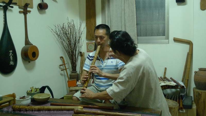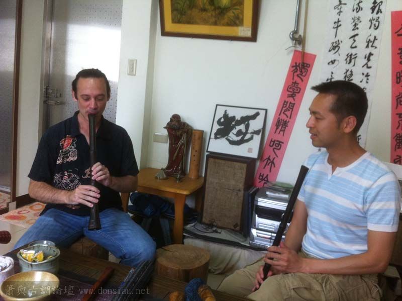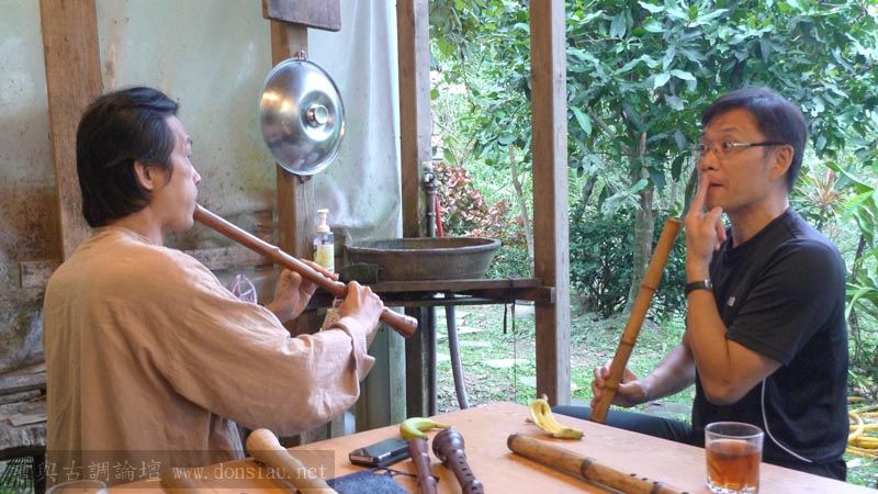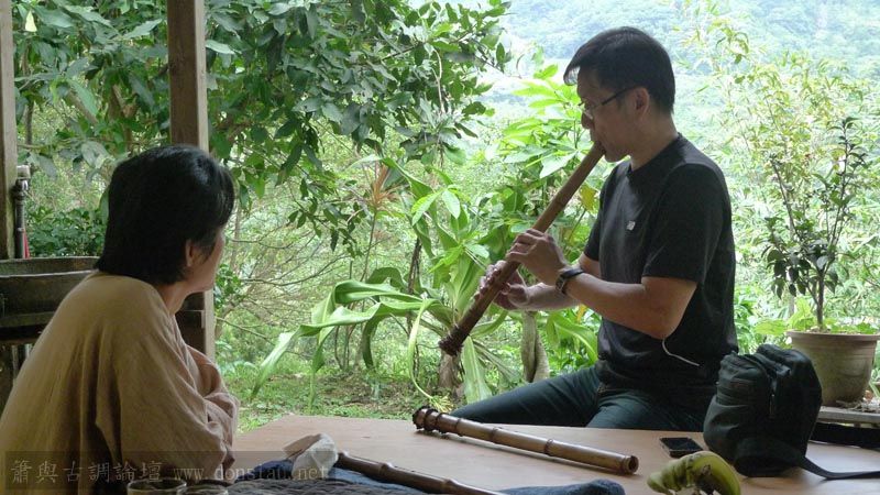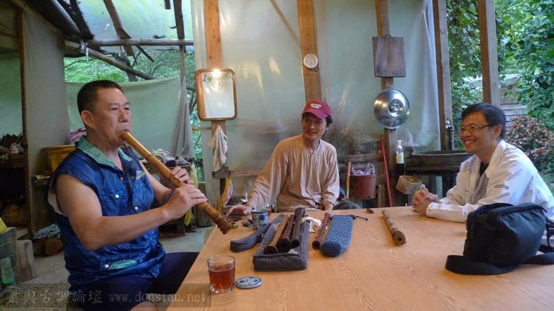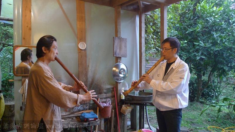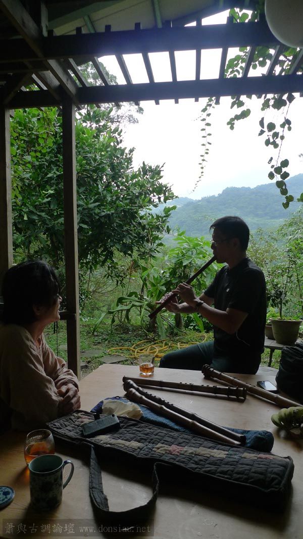 劉永泰老師所訂的簫完成,上山試簫,巧遇柔壯兄騎單車因雨到達,一起愉快交流!