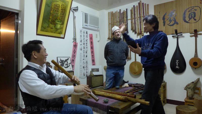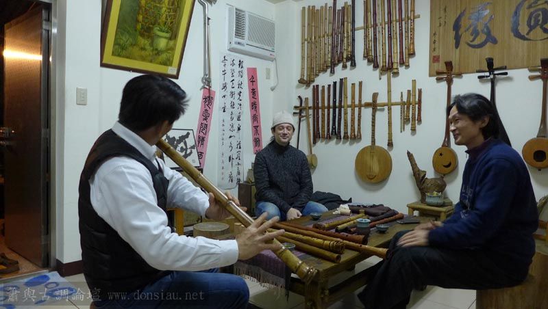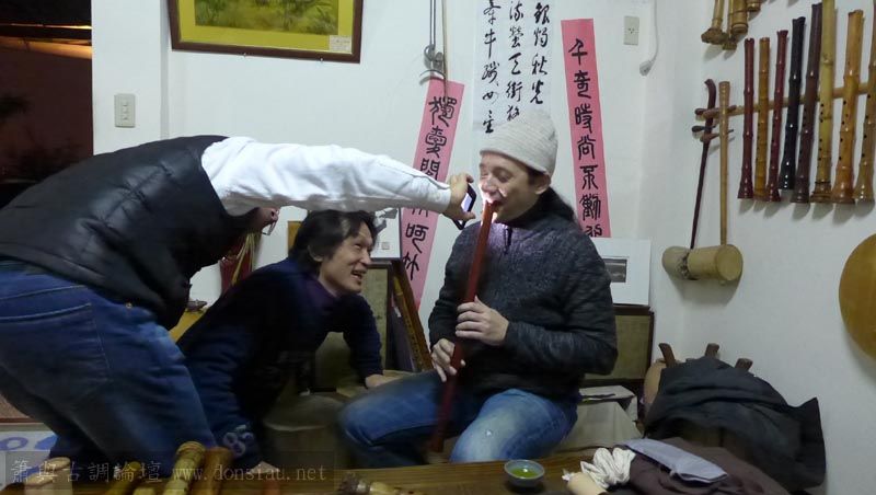 Gary先生再返台,剛好上海憲衛簫友也返台期間,昨晚課後一起交流,大玩各種吹管與吹法,也深入討論歐洲、印度、中東、漢唐等古老音樂文化的共通點與差異性,有趣的示範與交流...