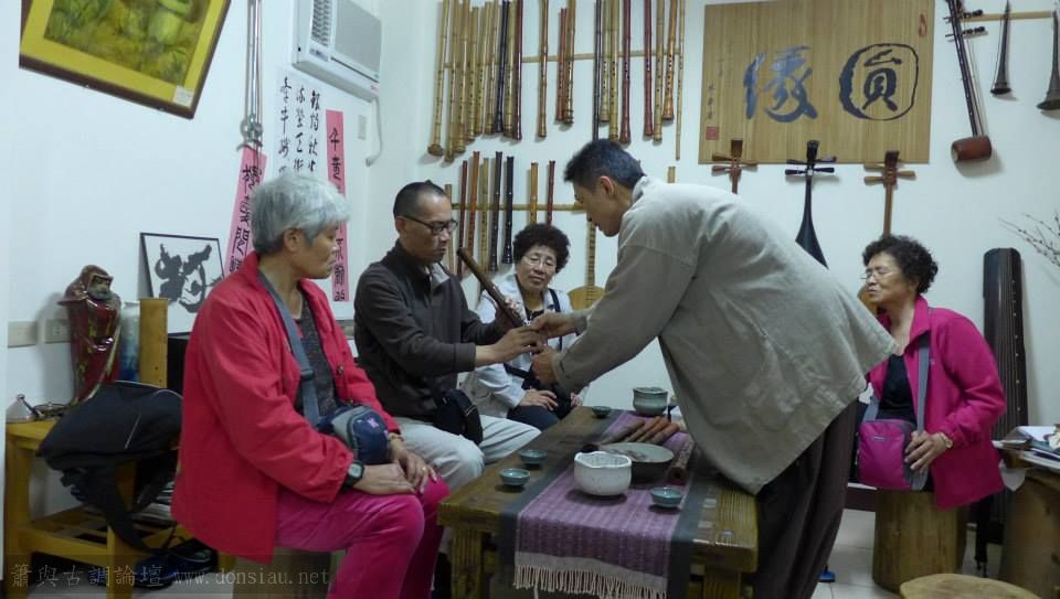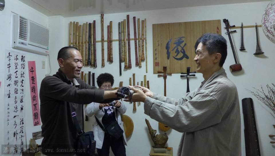 昨夜來自青島的資深簫友黃先生及其親人一起到訪,黃先生從小吹簫,退休後更是簫不離手,
