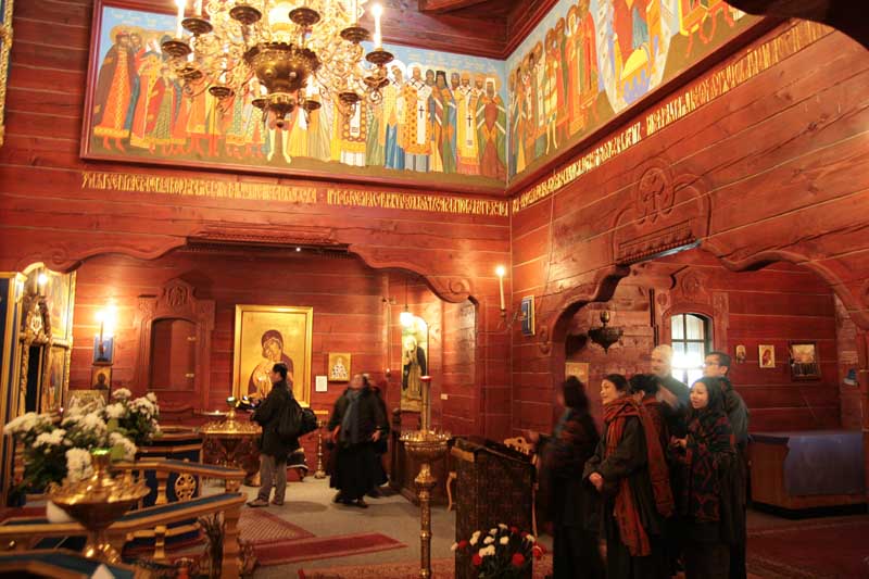 莊主右帶領大家參觀他的私人俄羅斯教堂,巨大的教堂以巨木建成,不用一根釘子,完全是古法建造,堂中催燦輝煌,令人嘆為觀止!