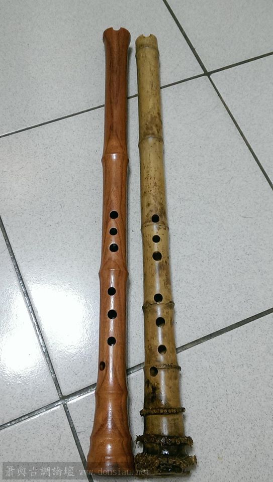為台藝大科班同學所製作兩管G調簫,都是無尾律長管,一竹一木作品