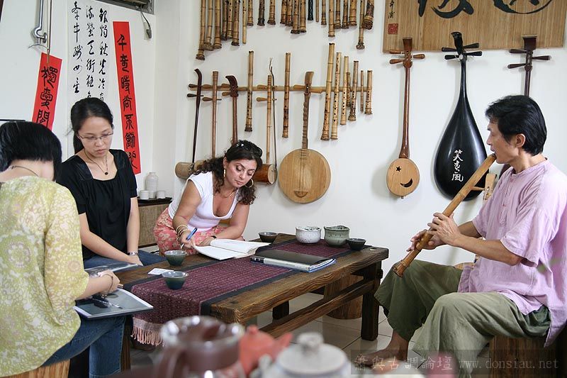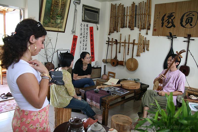 來賓仔細詢問,也做了詳細紀錄,示範彈唱及吹簫並全程錄影,希望這回的訪談對台灣文化的發揚有幫助.