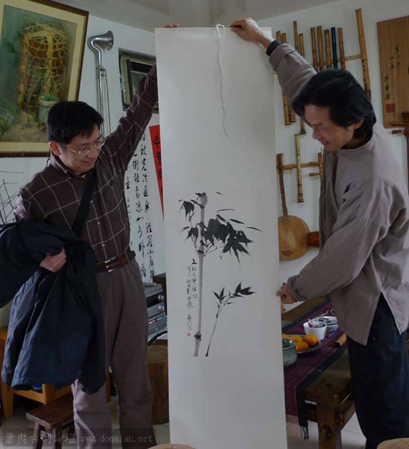 劉老師喜愛文松簫聲,並用於書畫創作時的背景音樂,透過網路結識這位文人書畫家,