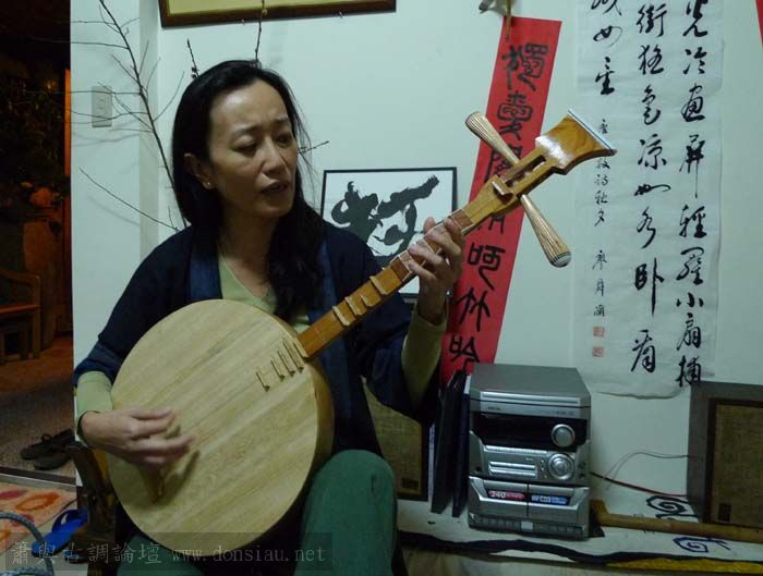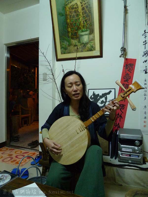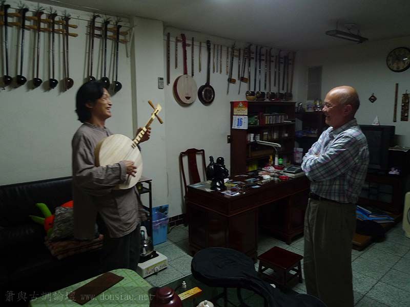 教彈一般流行歌為多,古調的彈唱變得難以聽聞!昨天試月琴,現場唱和,玩得他有點激動!