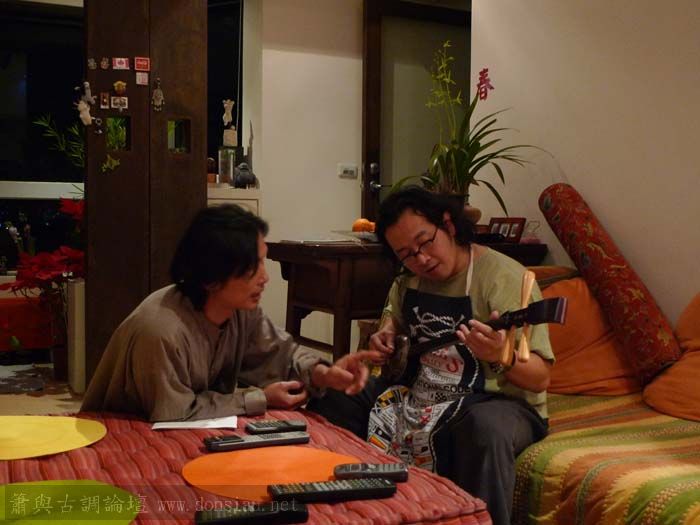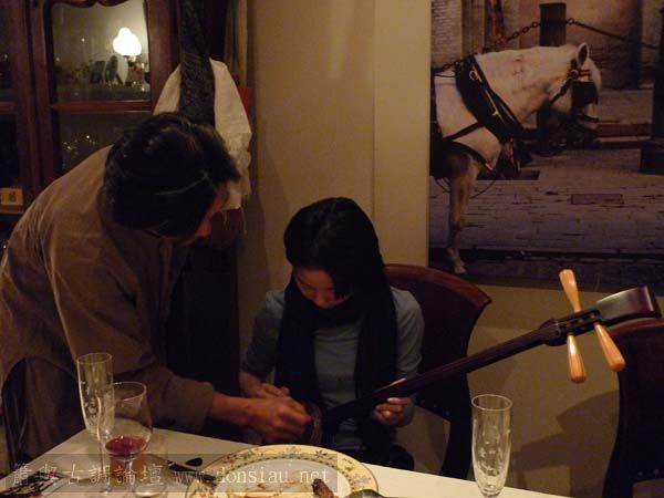 對傳統樂器也有濃厚興趣,當夜雅集,順便學習,已經具備古典吉他基礎,學彈三絃不難!