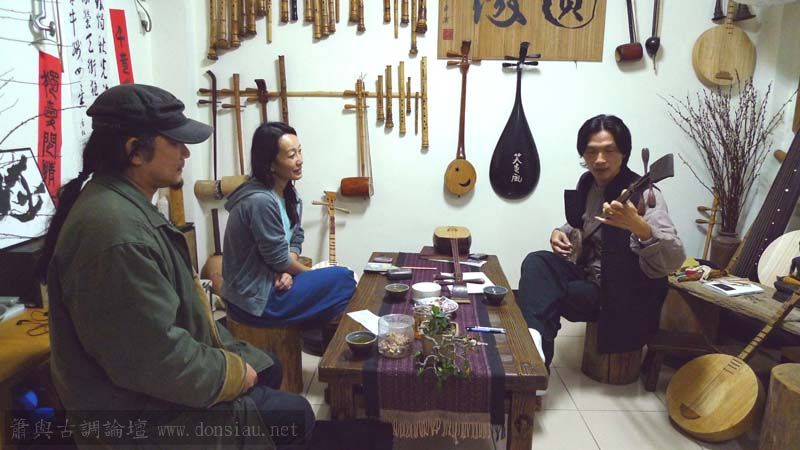課後來一位畫家朋友高閑至先生來交流,他曾出一片月琴彈唱cd,