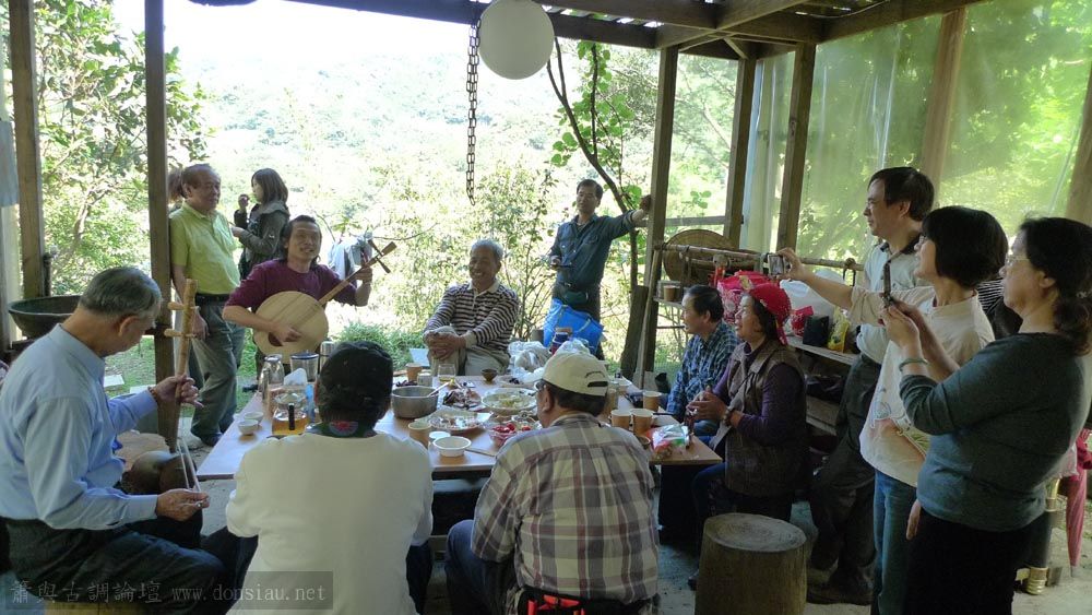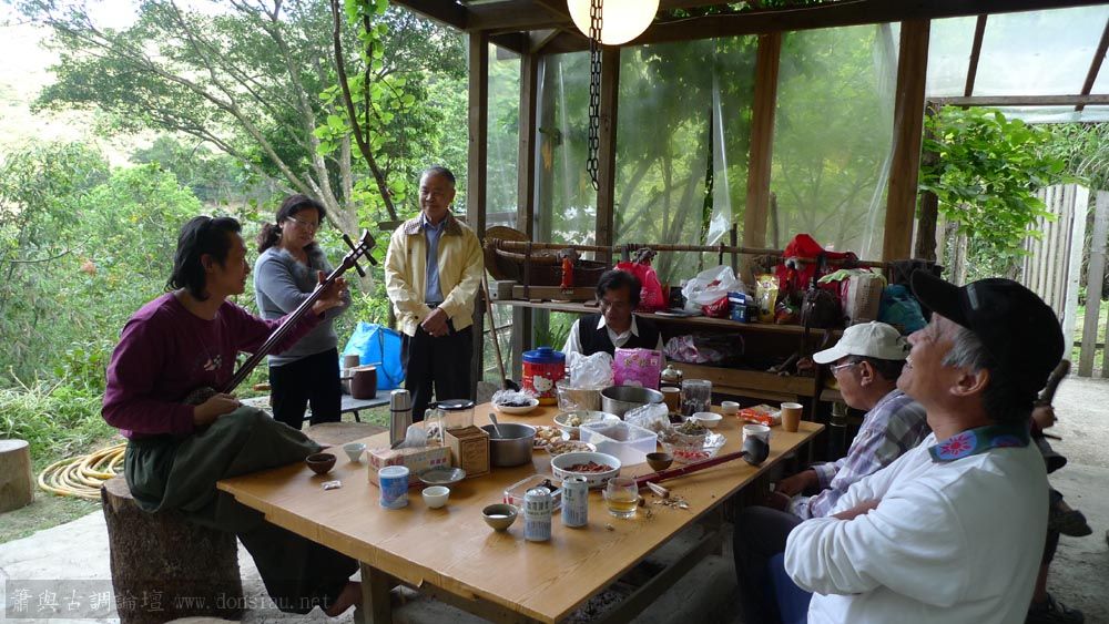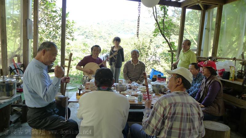 國寶何阿通老師,台南王振義老師,北市國林江山老師,學會林澤源主任及學圓們一起到山聚會,一時鑼鼓音樂歌聲齊揚...