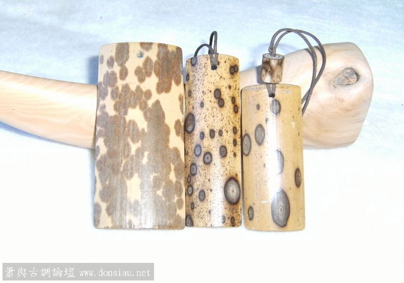 极品斑竹,往往让人爱不释手,赏心悦目,做出来的东西,价格也非常高。收藏的价值也最高。年份长久后,竹皮由蜡黄色慢慢转变为红棕色,带有一种玉质的透明味道。