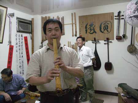對u口簫有很濃厚興趣,各式u口簫把玩了很久,也試用於吹奏一段本曲:越後三谷.