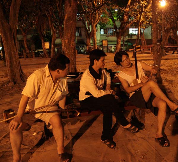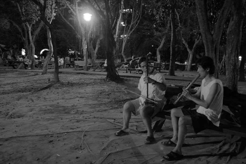昨夜添丁兄來電邀聚於公園,因有位青桐坑女嗩吶樂友想學三絃,乃帶簫相會