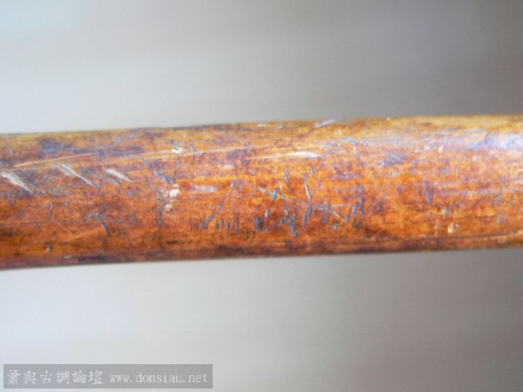 国庆节老屋搬家,发现一根细细的竹杆,大概是晾衣服用的之类, 估计有20多年历史,表面的伤痕看起来与玉屏的雕琢有异曲同工之妙,且已形成非常完美的包浆,色泽老成,锯下能用的一段带回来,上端口内径1.2CM,尾端口内径1.1CM,全长66CM,现将照片发上来,与大家分享。
