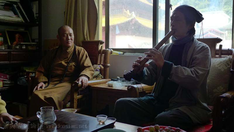 那天在天台山最高的華頂寺,與住持方丈喝茶吹簫,