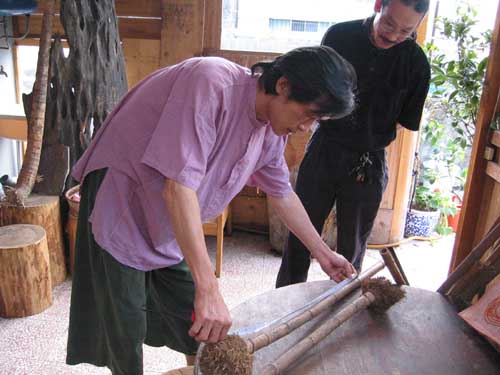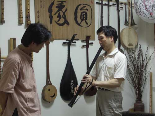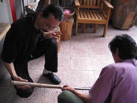 [他所習慣的11孔唐口簫,性能與音準不太滿意]