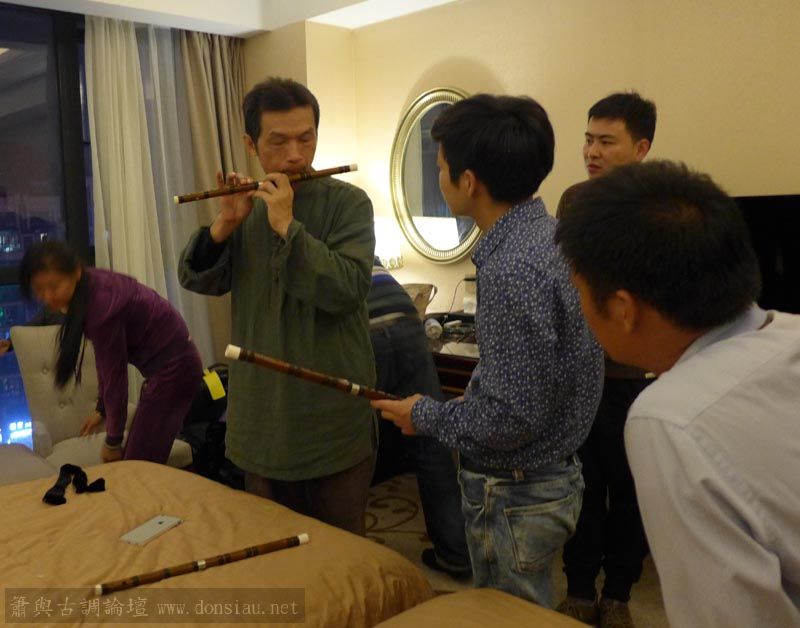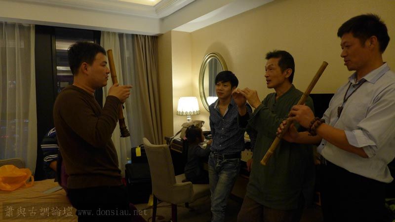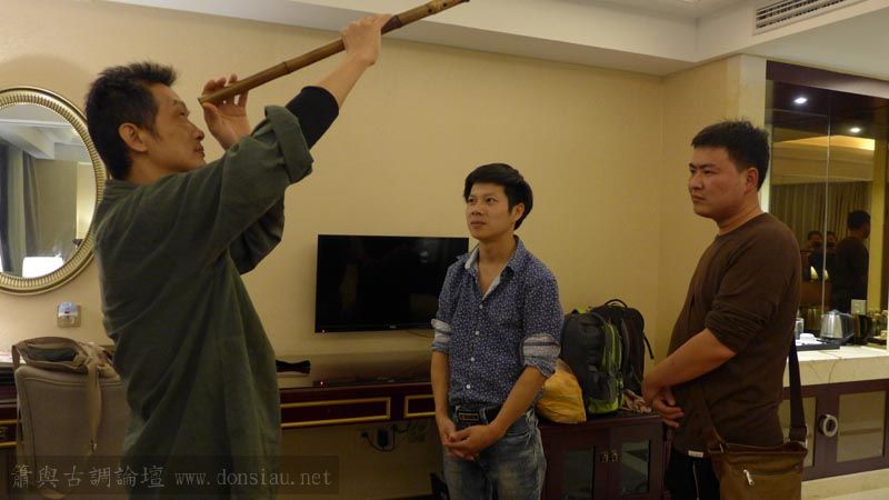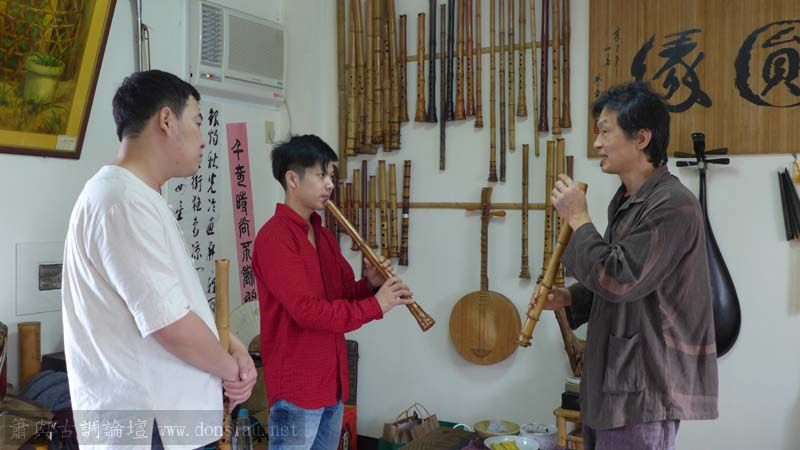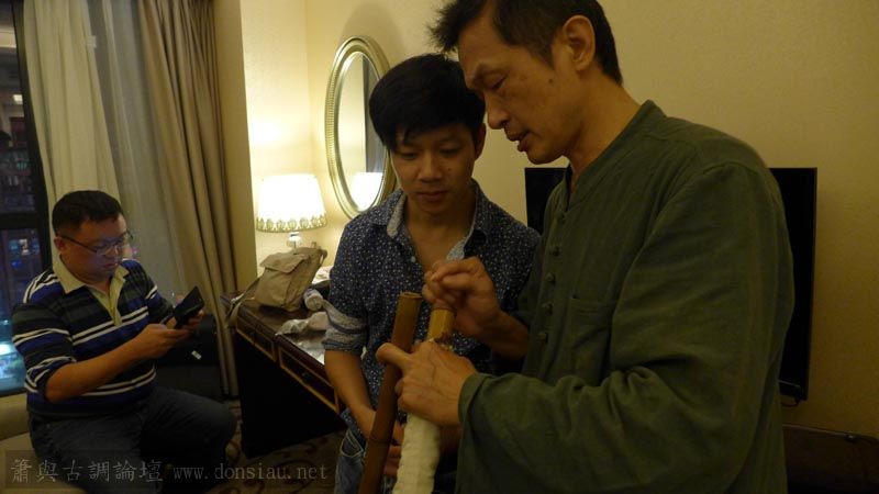 再深入講解製簫原理,也檢驗製笛簫狀態,去年在他家的交流與教導,相隔一年進步很多,