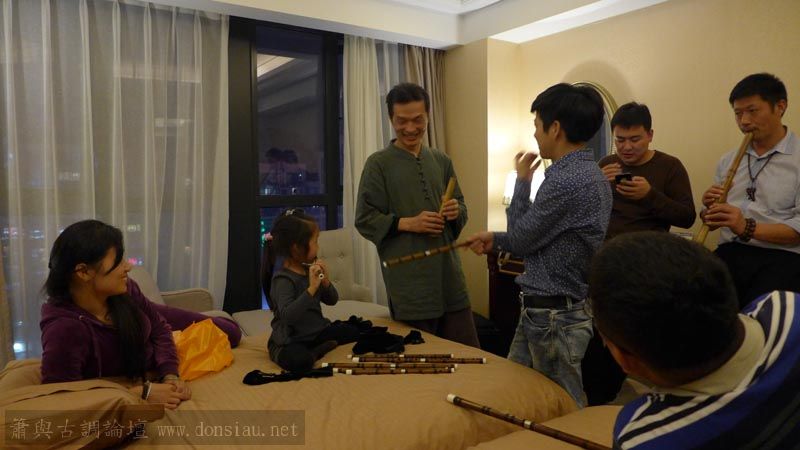 乙未年秋遊路過杭州,銅鈴橋製笛簫家丁竹一先生與其學生及竹笛教師朋友一起來餐廳與飯店會合,
