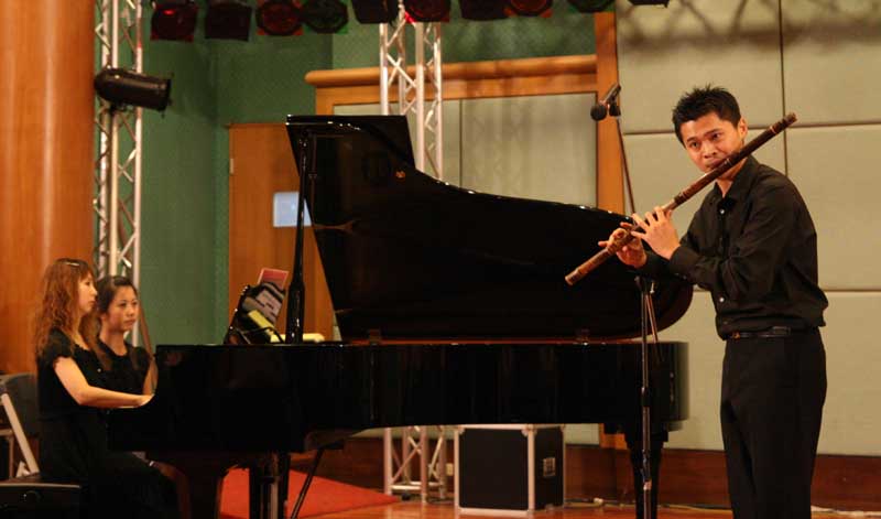 昨晚是劉宗岳同學的研究所畢業音樂會,傍晚陳中申老師來電提醒,我與內人乃驅車上陽明山文化大學,聆賞劉同學精采的竹笛獨奏;劉同學的畢業論文引用文松製簫多聲波共鳴理論,並使用文松調製的大笛演奏,是我參與音樂會並觀禮通過碩士畢業的頒證的意義,會後劉同學特別介紹與致謝.