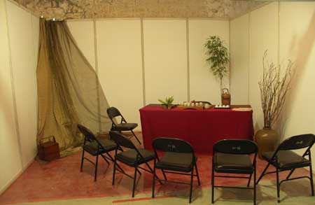 這回的安排原來在入口舞台演出,考慮大熱天,我建議在室內茶道區比較適合,舞台留下其餘較動態的演出。主辦單位也配合建議,不過初次移入室內,沒有音響,效果不彰,區域很大,樂器聲或人聲都無法展現。主辦單位無法臨時增設音響,後來我自備了音響,就產生很好效果!節目本來安排半小時,觀眾反映熱烈,演出了一個多小時才結束。