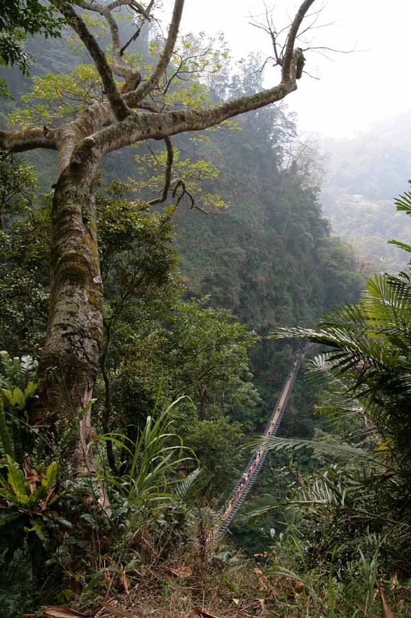 老家後山的大鞍烘爐闕成了著名觀光景點-天梯,春節訪返期間帶老婆上山一遊.風景的確很美!美在自然的峽谷,陡峭壯麗,以前命名"太極峽谷"出過一次大意外而封山,最近造成一座梯子吊橋,可以安全的居高臨下欣賞整個峽谷風光,引起轟動,每逢假期人山人海,原因無它,真的很美!又可以享受竹海與森林浴,值得一遊!