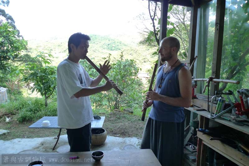 俄羅斯籍簫友亞聖帶其父親到山居拜訪,剛好簫友林柔壯先生也到,