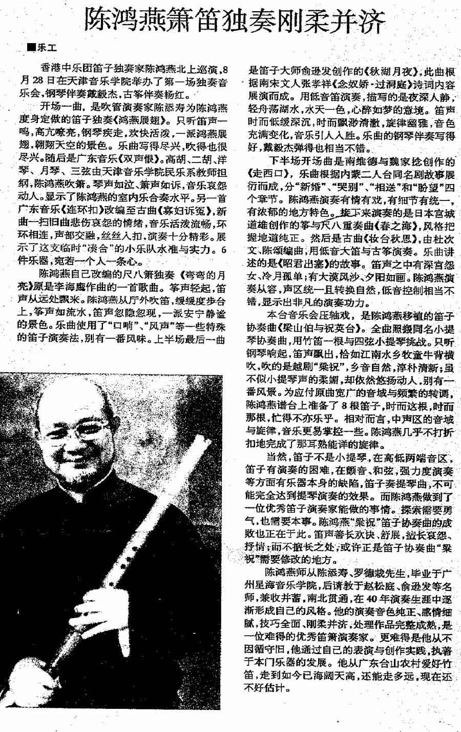 香港陳鴻燕老師受北京音樂週報報導,及玉屏簫笛節的邀請函。
