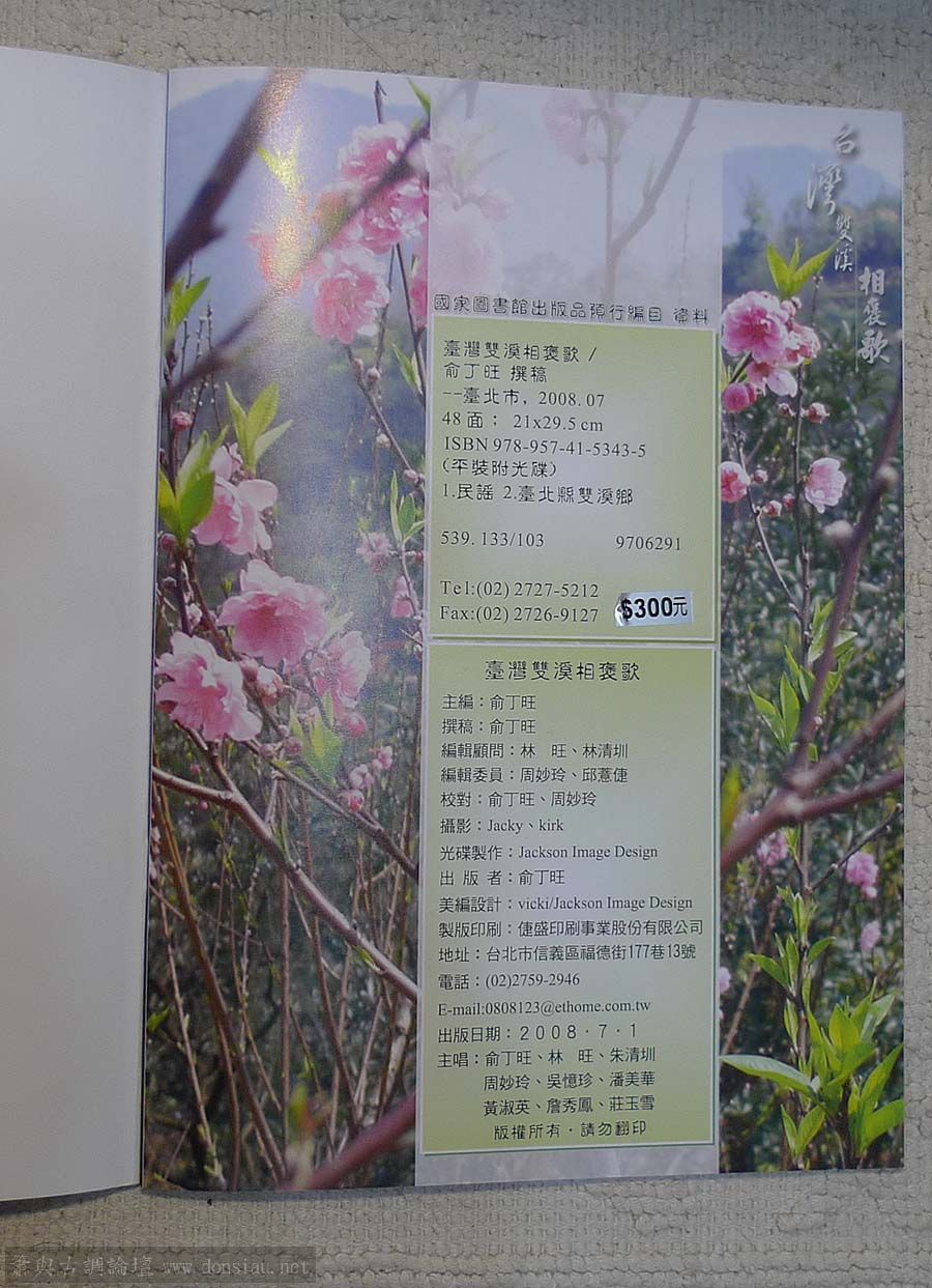 石碇鄉四結農場主人林四結先生轉贈文松一本雙溪相褒歌的有聲書,