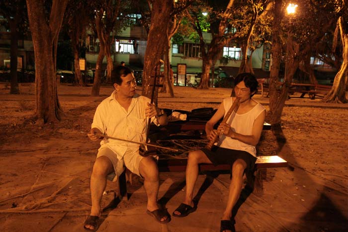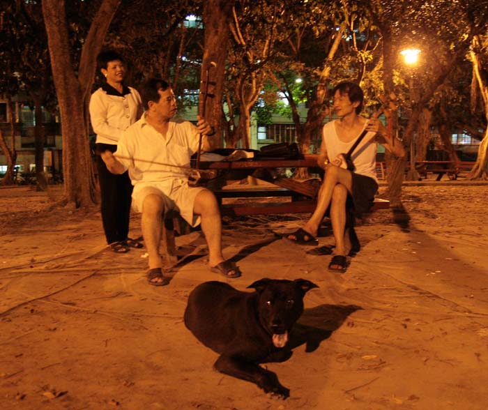 昨夜添丁兄來電邀聚於公園,因有位青桐坑女嗩吶樂友想學三絃,乃帶簫相會