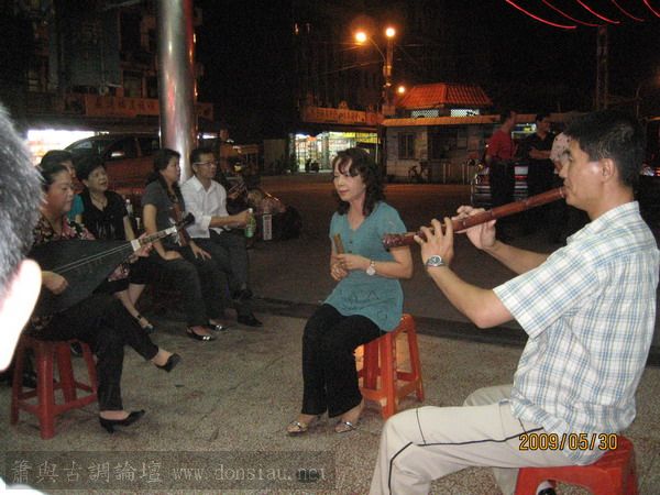 前晚下禢於南方澳南天宮的香客大樓,南天宮是有名的金媽祖所在,他的香客大樓舒適得讓我有點訝異,不比一般的民宿差,當晚在廟口很多高手獻藝,只可惜當地人好像不太知道這個消息,都是弦友跟媽祖在欣賞居多,而且本來預計九點就要關門休息的廟祝讓我們一直唱到十點多似乎也撐不住了,他們可能不知道是有錢也沒辦法專程請這些人來表演的,媽祖真有福氣!! <演唱的是南聲社的嬿朱老師>