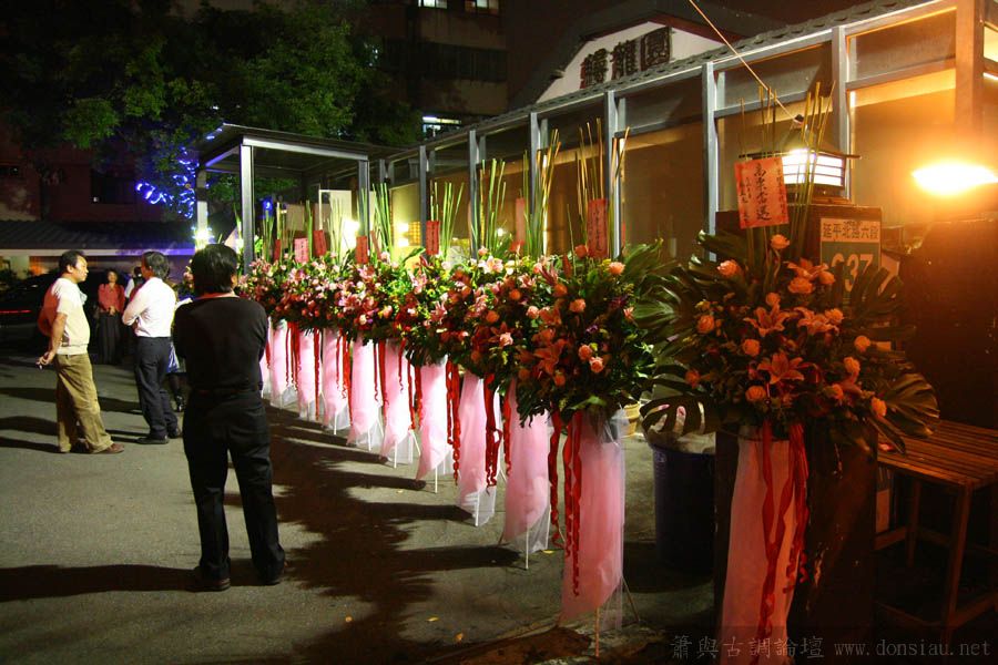 餐廳全包為大會使用,入口處各政商名流致贈花籃無數