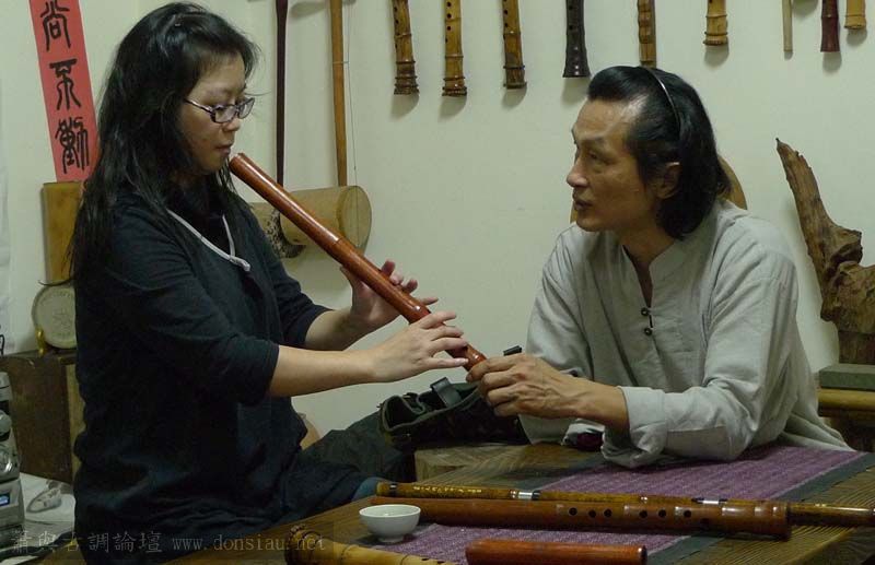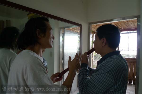 蔡先生來山學簫,自學多年,指法與吹法都做了訂正..