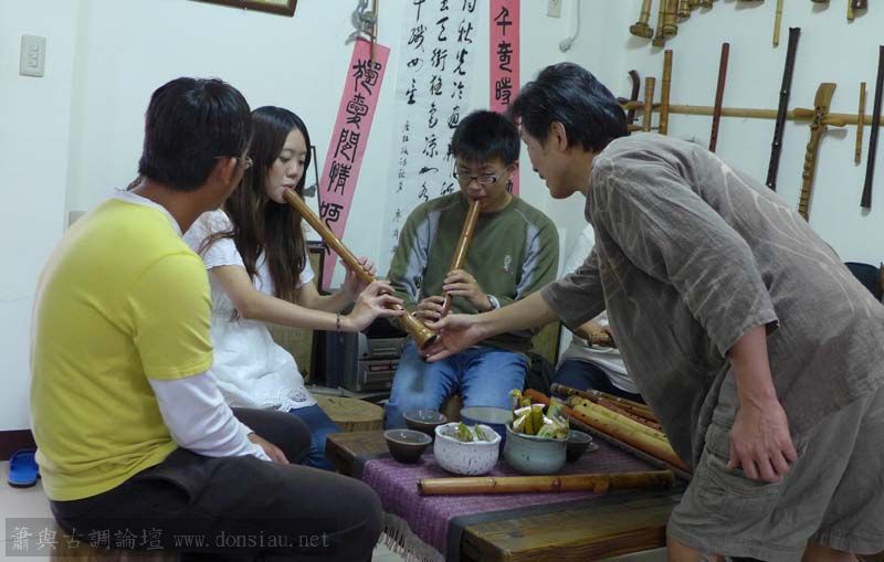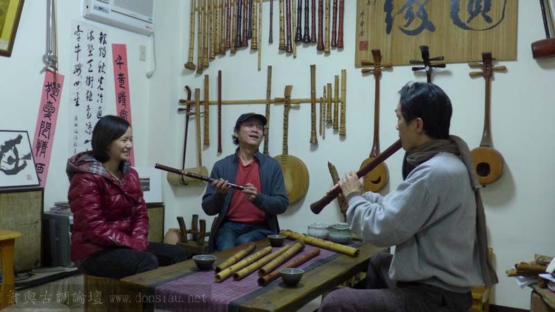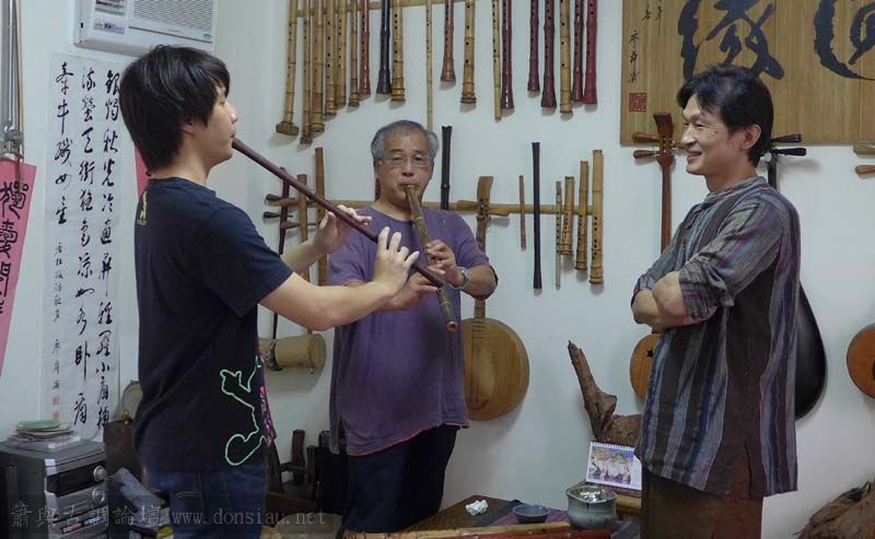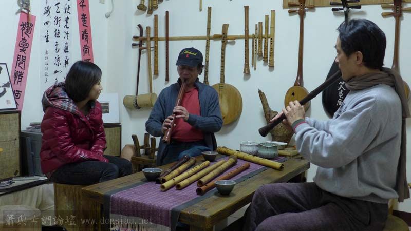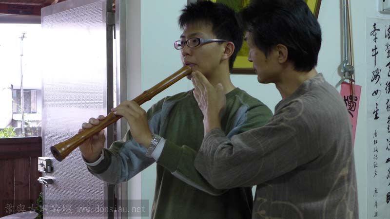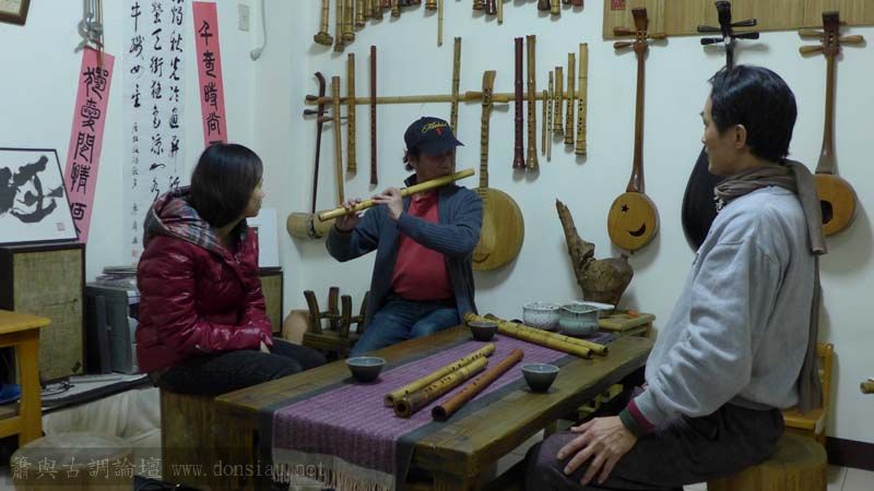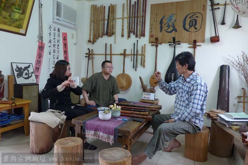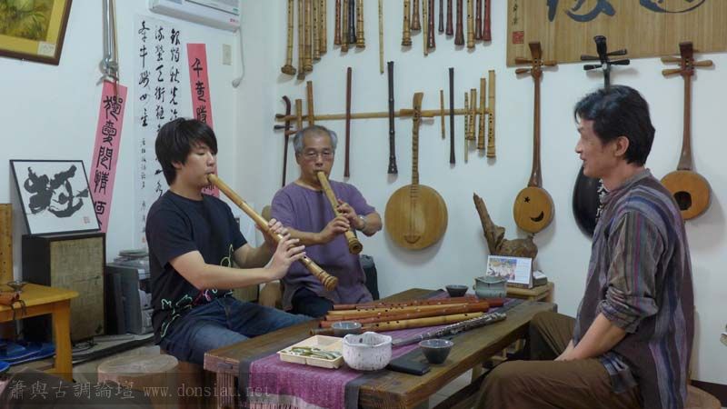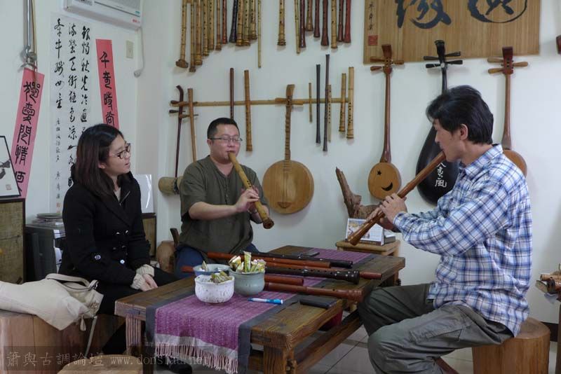 陳老師二度帶笛來做音孔排列樣本,也約了台大及文大的研究生一起到達,