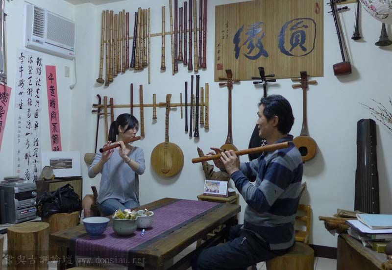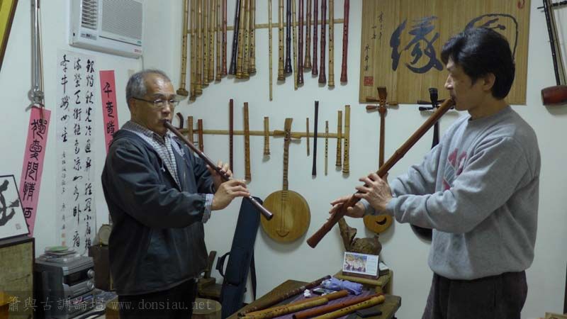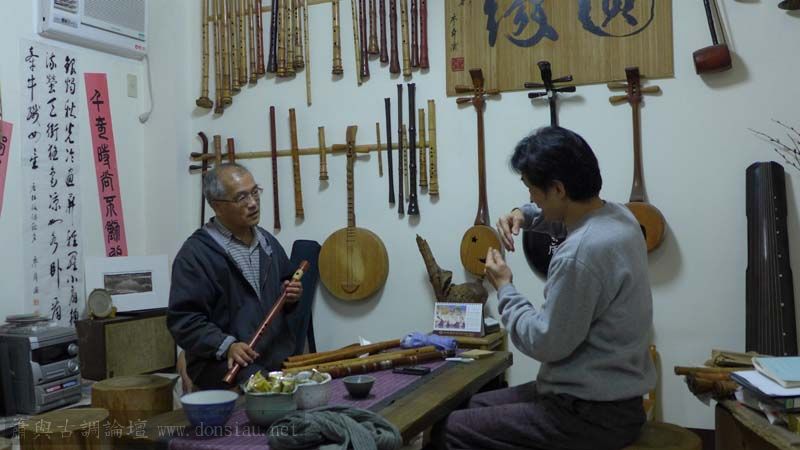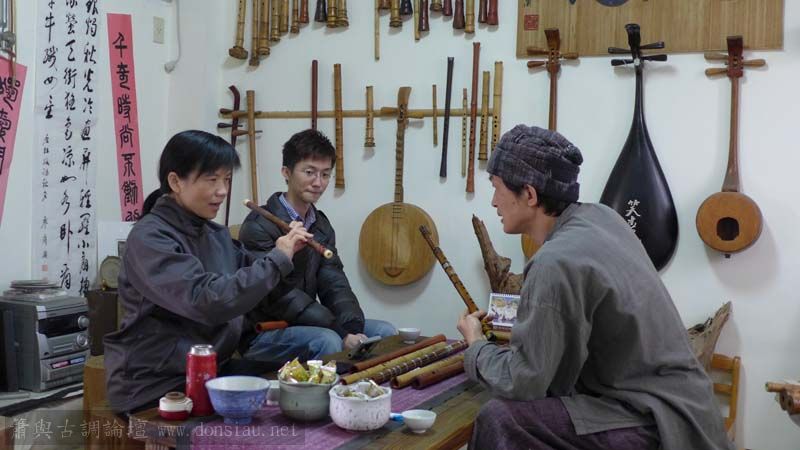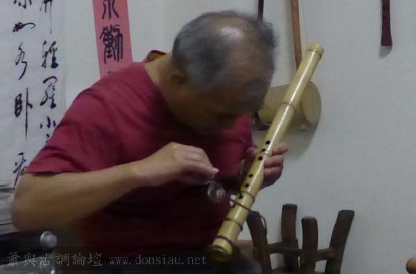 陳中申教授昨晚再訪,試合十孔笛初步樣品音孔排列位置,做進一步修正