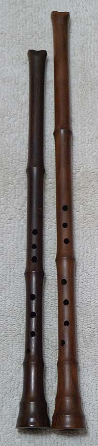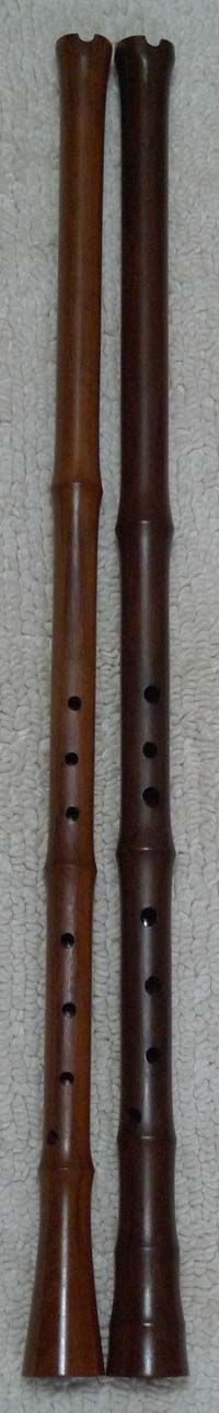 製作中突破更細管紫檀琴簫(圖左),為湖南李先生所作,比對原紫檀琴簫樣品,更細管徑,曲線模式也不同;