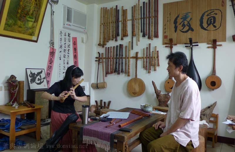 留學日本的陳教授當年在日本學尺八三個月,沒吹出聲音而放棄,卻沒忘記對尺八的熱愛,經常創作尺八曲,與尺八家福田輝久合作;文松在幾秒內讓他吹響,愛上文松最近完成的老檀寬宏曲線音色,出讓我的最新隨身唐尺八