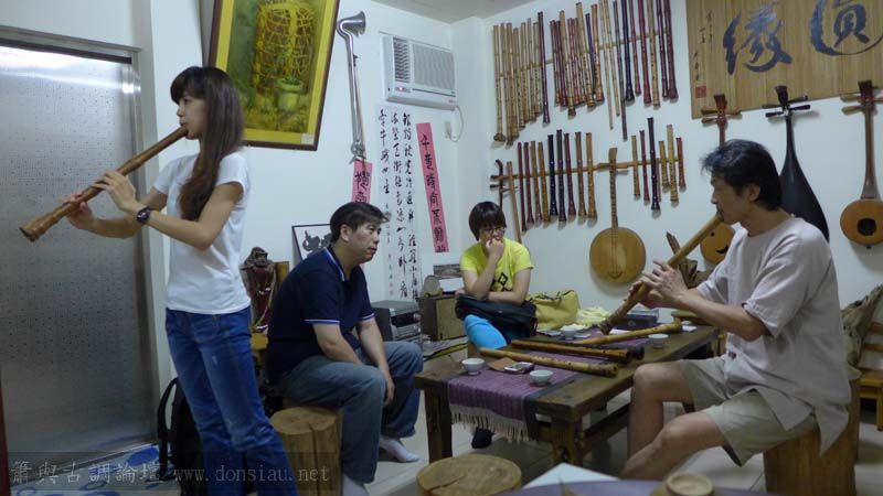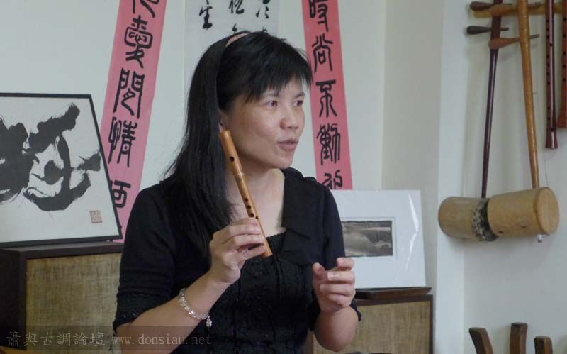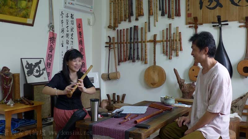劉老師剛剛演完張玉樹教授的創作〔秋〕簫與弦樂四重奏,挑戰文松簫超高音的新曲,超高音吹響不難,吹弱音就有相當高難度,演後他自覺還可以更好,因為演出壓力與緊張減損,趁機會我示範鬆口風的弱高音吹法,大家都相當訝異,高音達到的纖細度與純淨度,劉老師的低音濃度已經進步很多,高音在練成放鬆法,他不久將開簫獨奏會,相信他的簫韻會很有潛力!