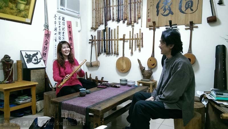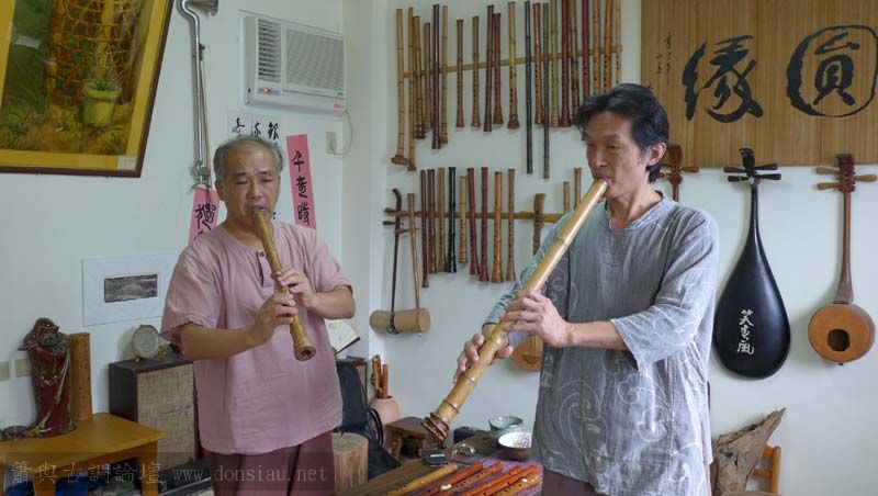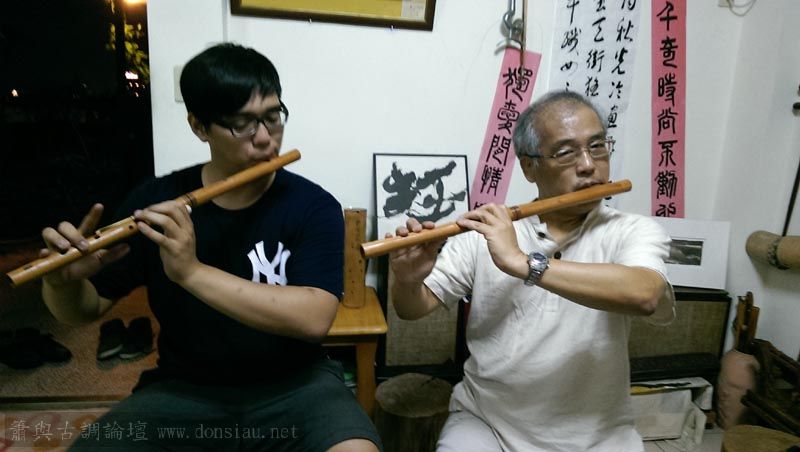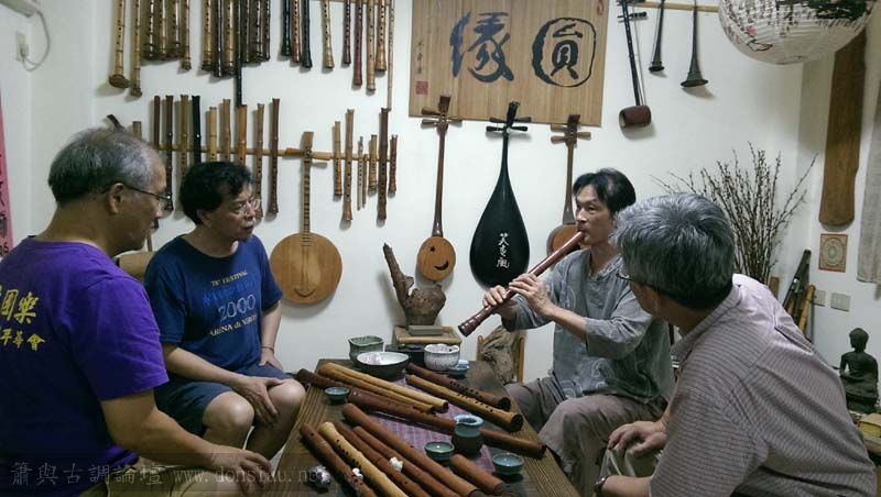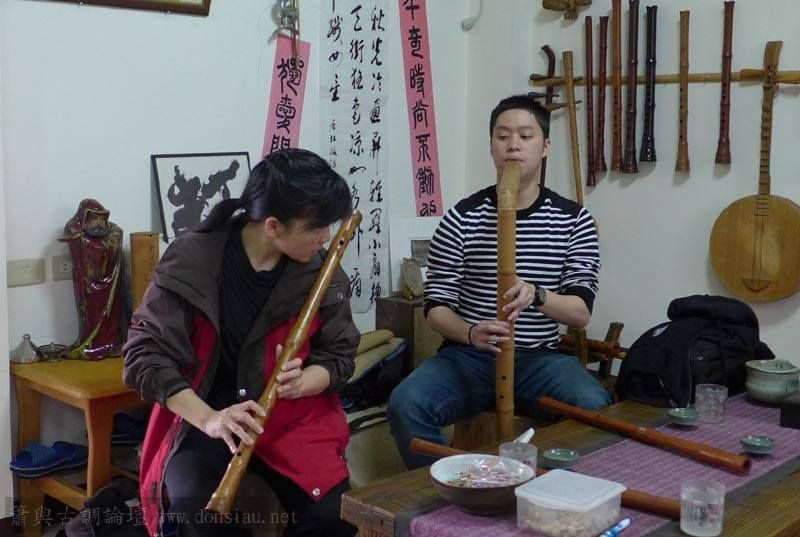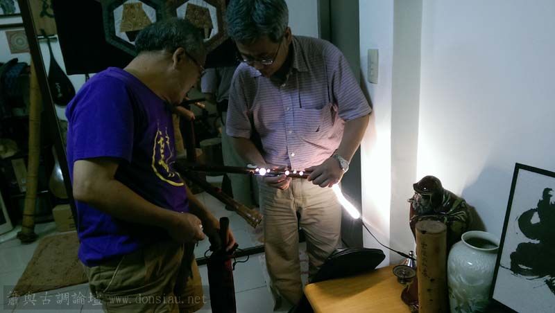陳中申老師帶來長笛家莊清霖老師與科技人國樂愛好者許秀熒先生一起來交流,莊老師對長笛及低音長笛等很有研究,深入討論笛音色與製作上的問題,相談甚歡!莊老師相當肯定文松笛簫的製作與豐富共鳴音色,也對彎管低音笛的吹口設計很讚賞!理念殊途同歸,有樂遇知音之感!有意合作以竹炭材質製作中音笛吹口段,我樂意挑戰以吹口段調整全管音孔歸合共鳴深度的實驗