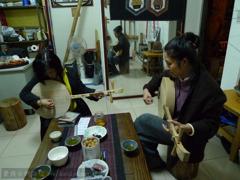 Tina,寶玲.欣霏等昨夜接著了空師父來訪,對於吟唱與月琴陸續都產生了興趣,