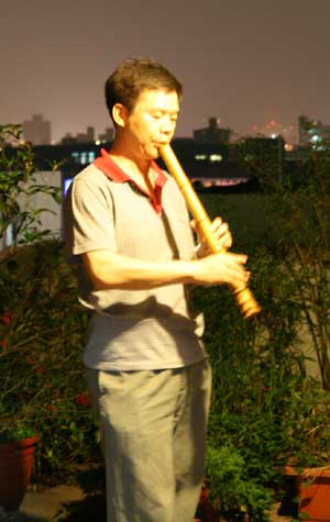 有一點冷落了今晚來訪的簫友,調整一下口風後,自己體驗要領,並試驗長管,簫聲中可以聽到進步的結果。