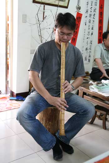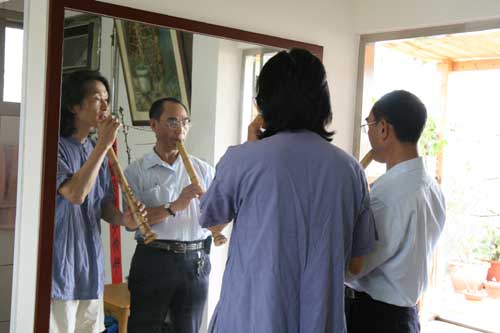 昨天下午新加坡黃德成先生成再訪,剛好中部簫友葛俊良兄也在場,黃老師與一位台藝大畢業的胡琴專修同學一起到達。一年一度來台的他已經走遍北中南了。同是樂器製作人,在樂器製作的音色問題與原理,我與黃老師有一場熱烈的討論,觀念上有不少雷同與差距之處,認知的差距也會造成作品性能方向上的差異,樂器製作上的原理是理性追求的真理,有規律規則的定數與條件差異下的變數,不是感性感覺,是錙銖必較的。真理在充分佐證下就會越辯越明,這是一次有趣的對話!黃老師也在胡琴改良上下了功夫,對傳統樂器的發展用心,值得讚揚!