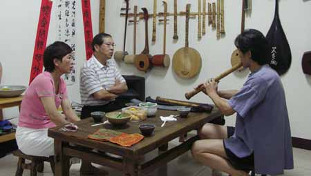 [帶吳先生來的王詩榜先生已經大有進步!吹曲相當動聽!這回來將張力吹法再略作加強,還有腹吟音也學成。]
