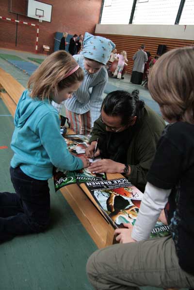 僑胞前來協助接待眾進場(劉慶隆拍攝):