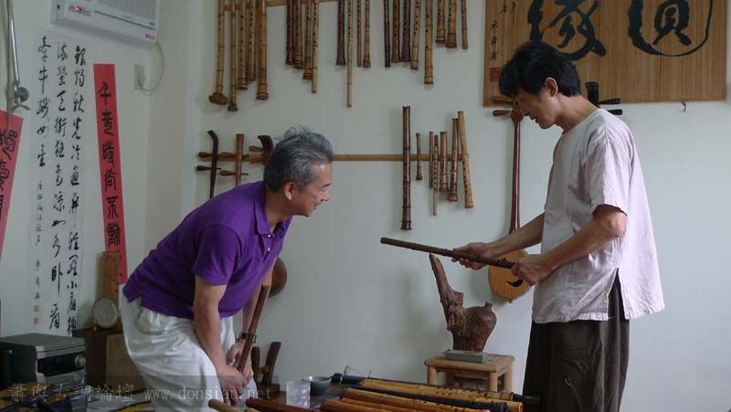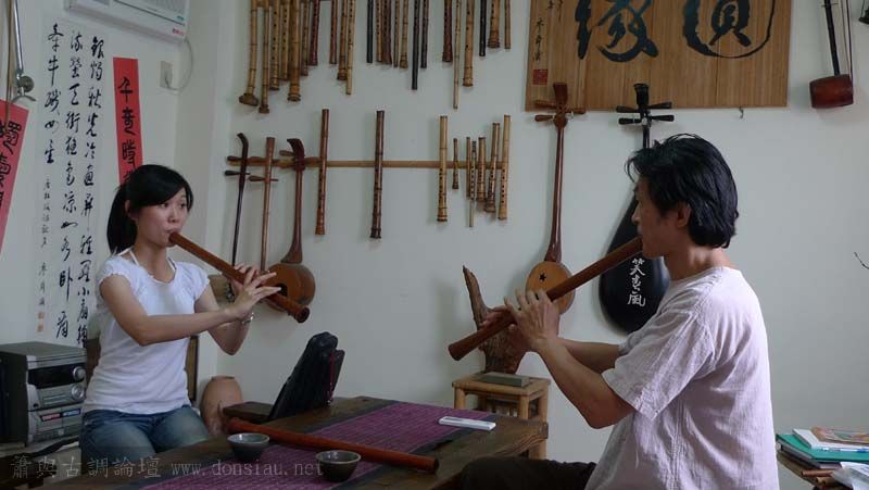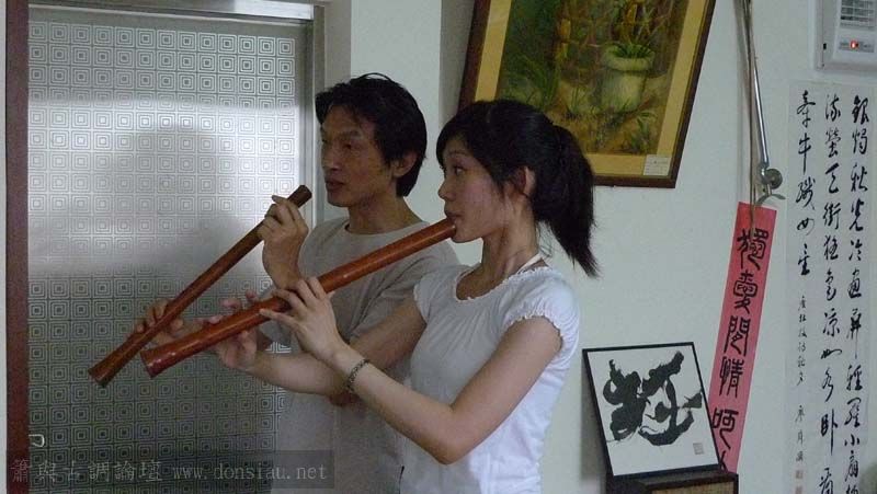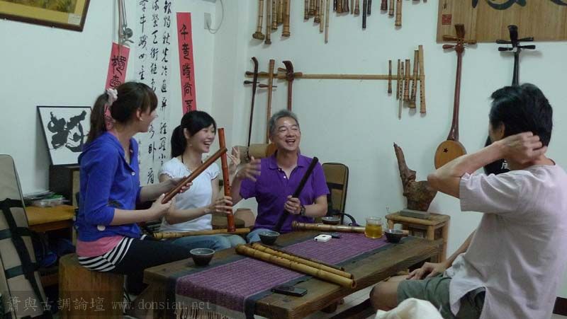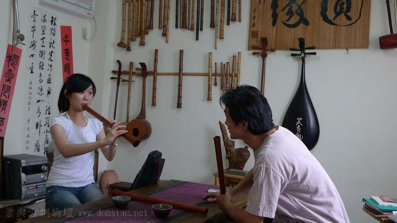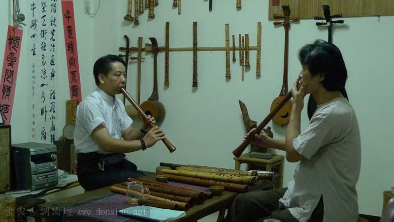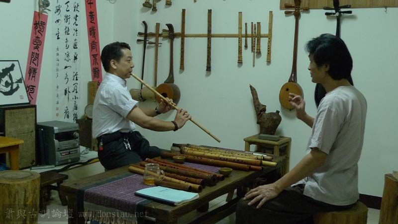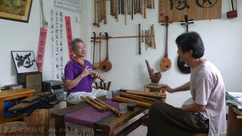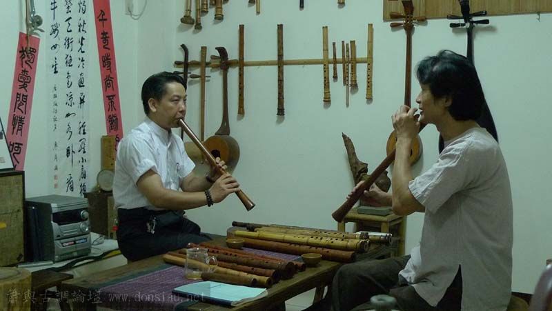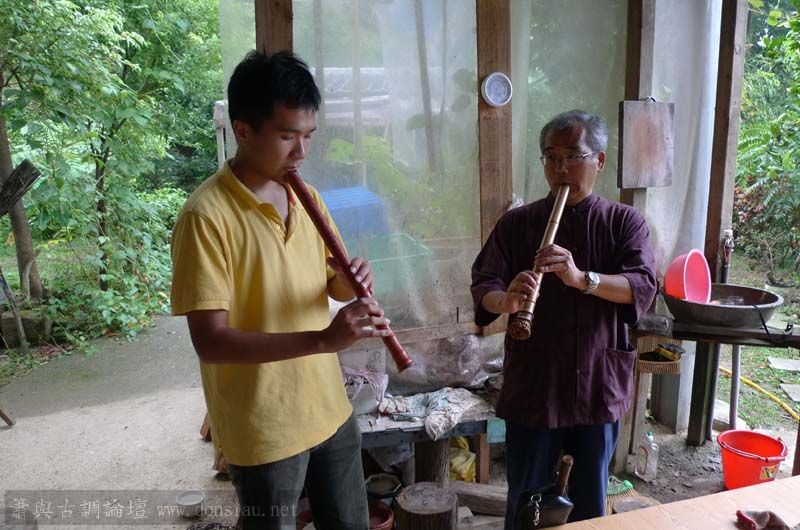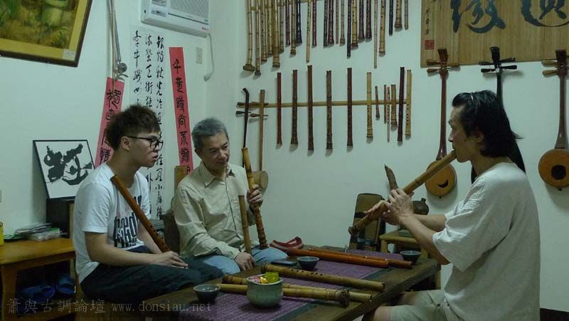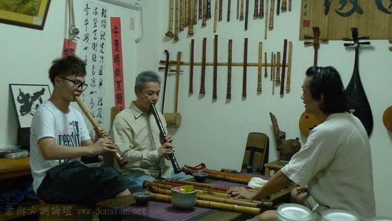 昨天陳中申老師再訪取簫,首先測試木簫與竹簫音色辨別,以兩把木簫一把文松130分貝粗管大音量竹簫,