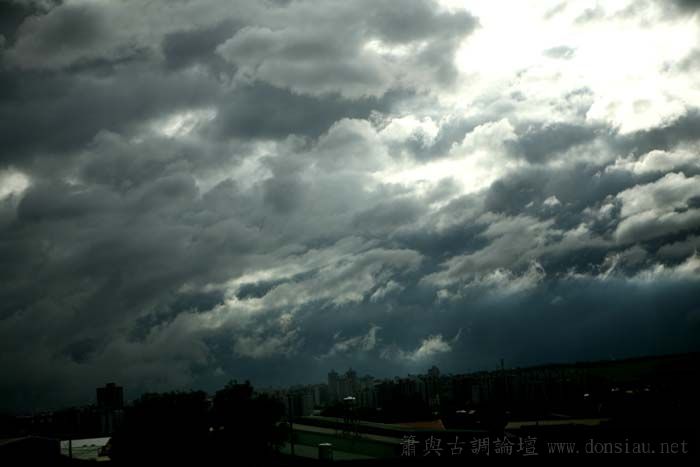 今早特地熬夜趕在颱風進入時.觀看風的強度.我家後院有一大片柚子樹和竹林.每次有風吹時.一片竹林或樹林齊舞.時間一看久.突然覺得那些樹林和竹林好像有生命力似的.好像很多人在舞動著.不過早晨陰天的色調都灰.加上現場是低光度.低彩度和低明度的現場.加上的這些樹和竹子的晃動.神秘感十足.