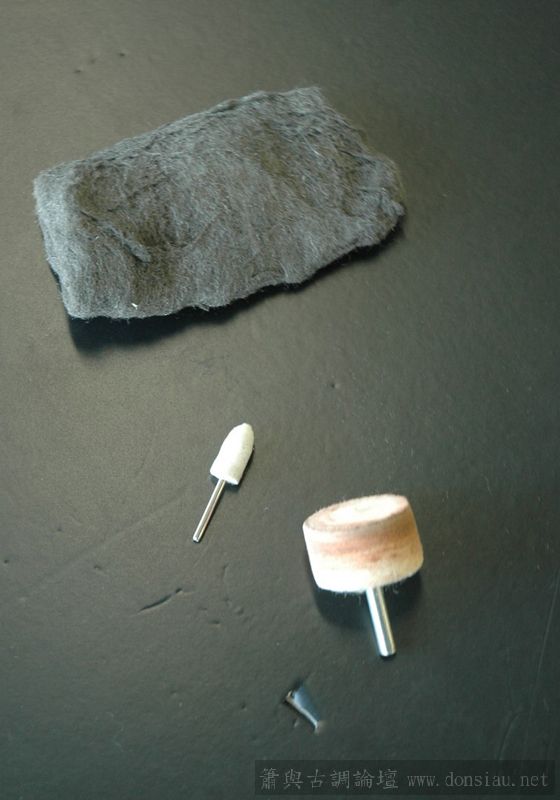 以前抛光是用图上方的抛光棉,这此买了两个抛光棉头(图下方),是接在钻孔机上用,试用结果如何?因钻孔机速度太快,极难控制!