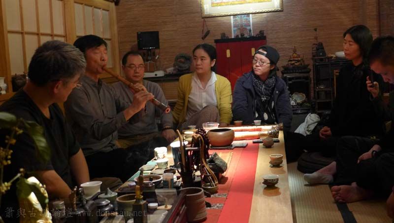 首晚在西湖畔的綺嘉心養生館與龍井草堂主人等杭州藝文人士雅聚,與朱老師一起分享簫聲,