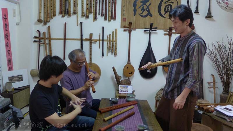 陳老師二度帶笛來做音孔排列樣本,也約了台大及文大的研究生一起到達,