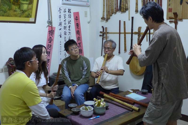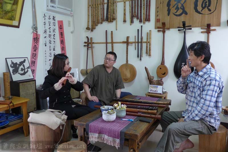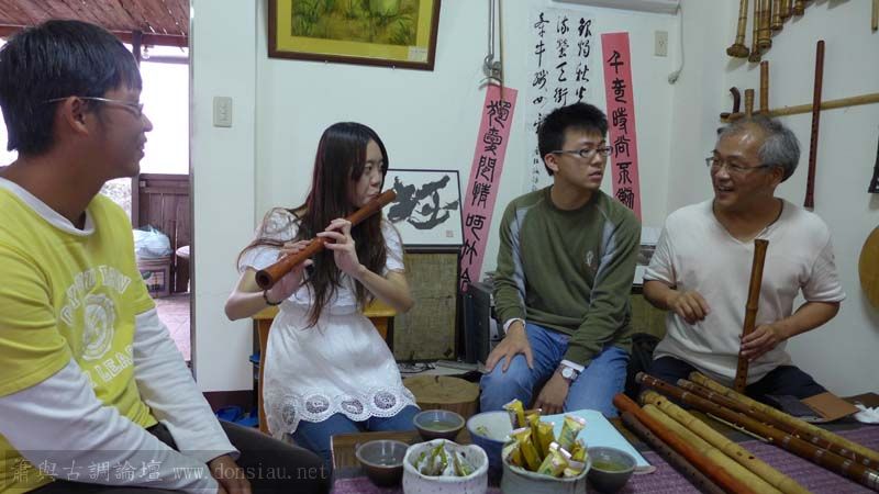 國樂指揮及笛簫教學黃佳昇老師及文大研一同學一起到訪,學習文松簫吹法,