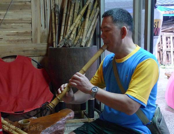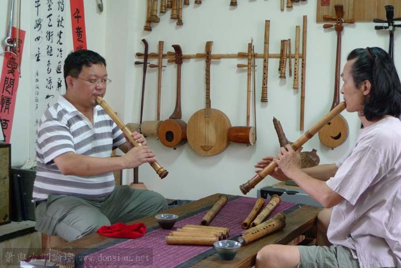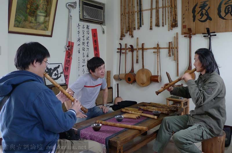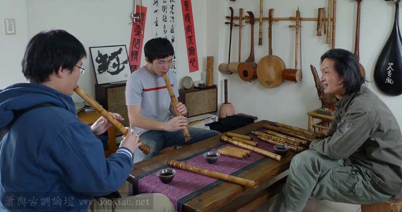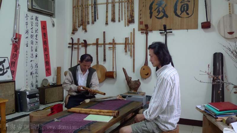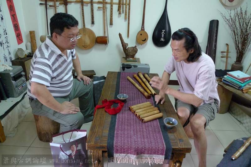 陳先生自大陸歸來渡假,接觸笛簫多年,也曾師事某名師,特來體驗文松簫的特色,帶來一管某名家作品參考,