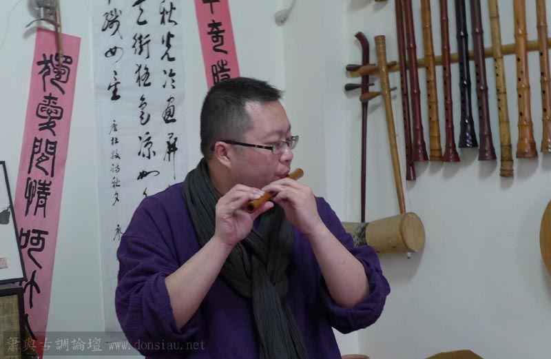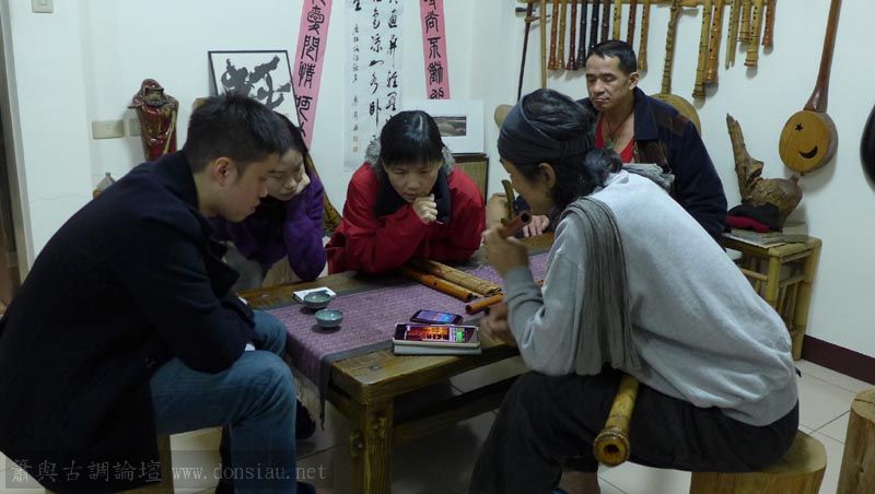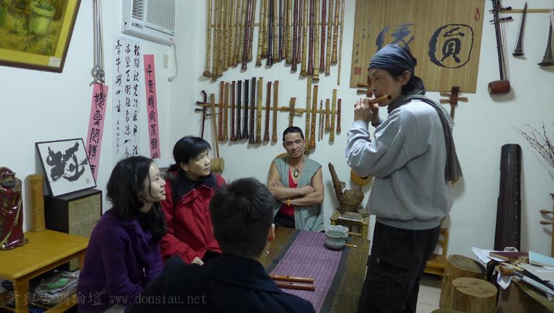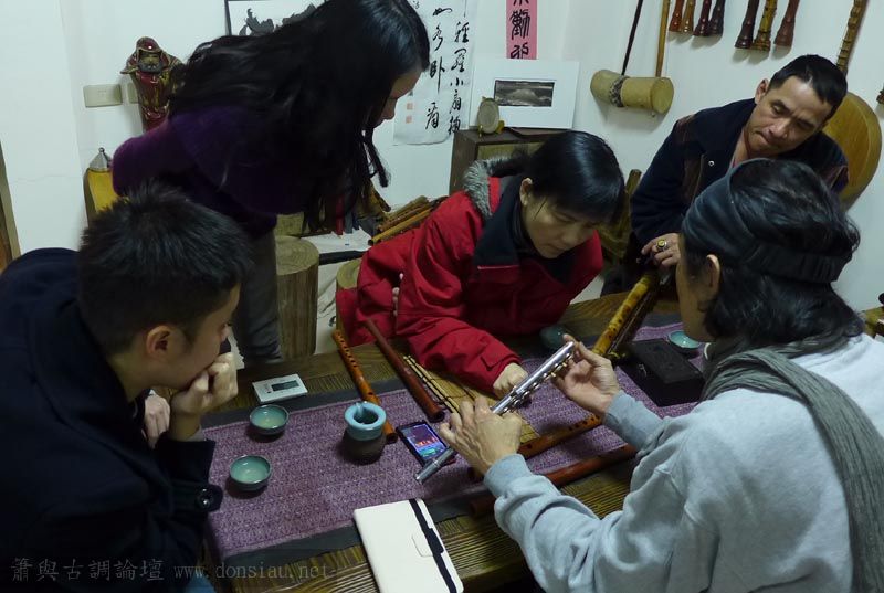 南藝大范同學使用文松簫有疑問專程北上洽詢,文松示範風門的收放與音色變化,